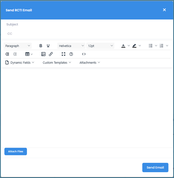 This will open the Send RCTI Email pop-up window. Fill in the necessary fields, and once done, click Send Email.