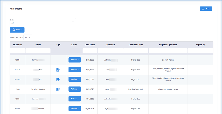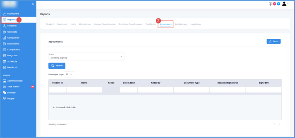 In this tutorial, we will walk you through the process of generating an Agreements Report in the Student Management System (SMS). This report allows you to view, export, and analyse key data related to student agreements—such as training plans, letters of offer, and any signed documentation linked to a student’s record.