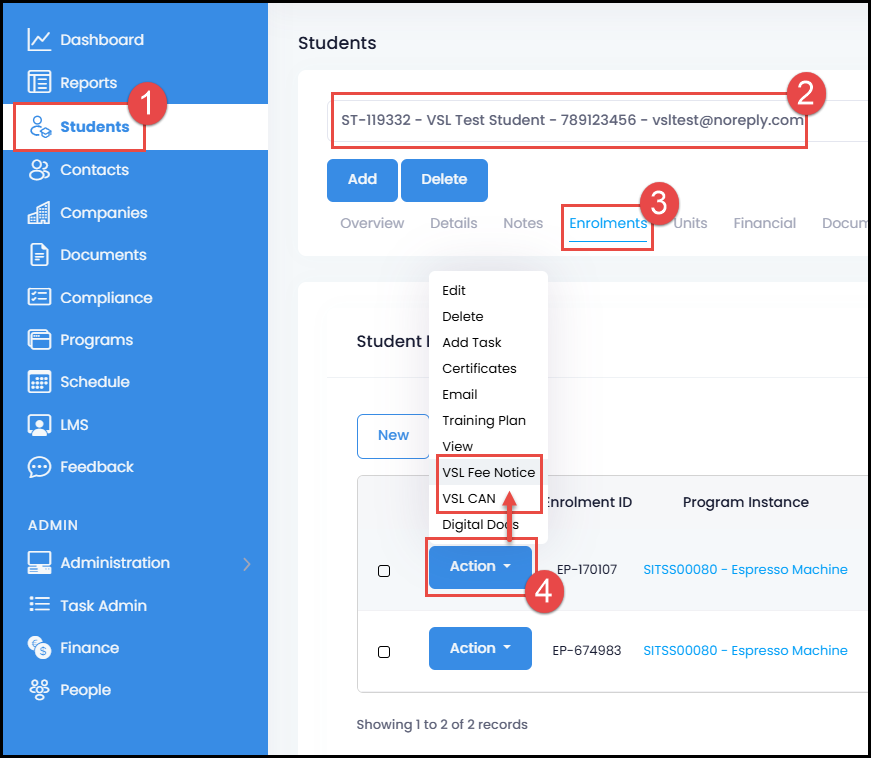 Overview This tutorial explains how to quickly email or download VSL (VET Student Loans) reports from the Student Enrolment area. These reports are essential for maintaining accurate loan data and meeting VSL compliance requirements. You’ll learn ...