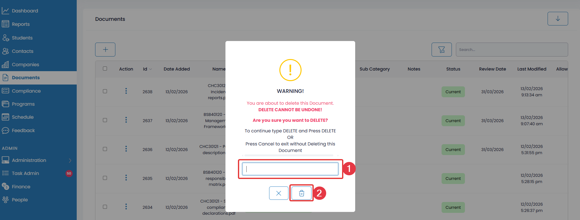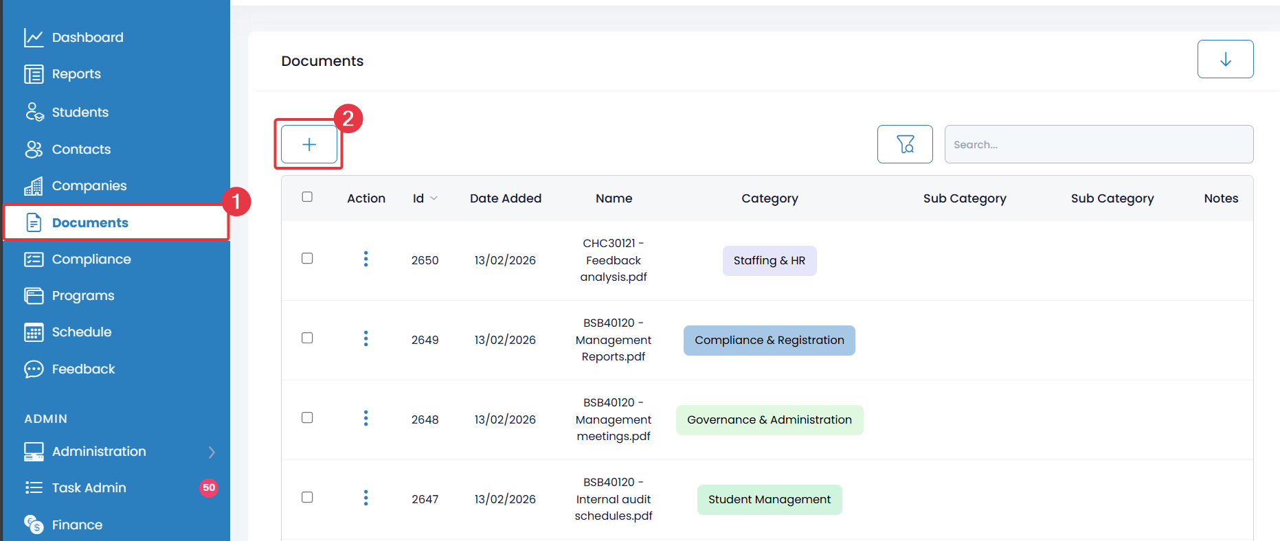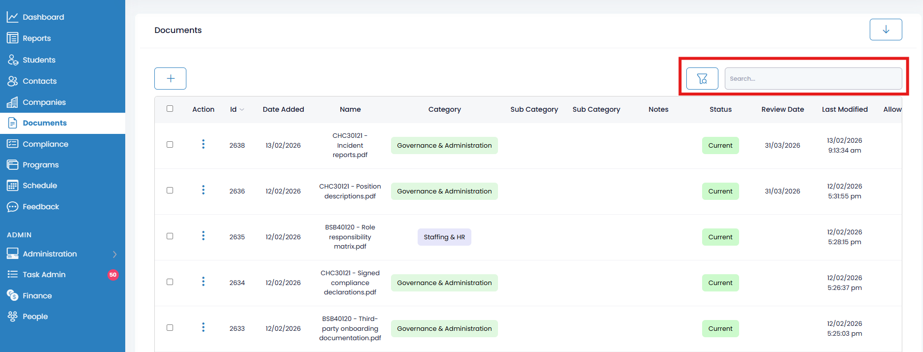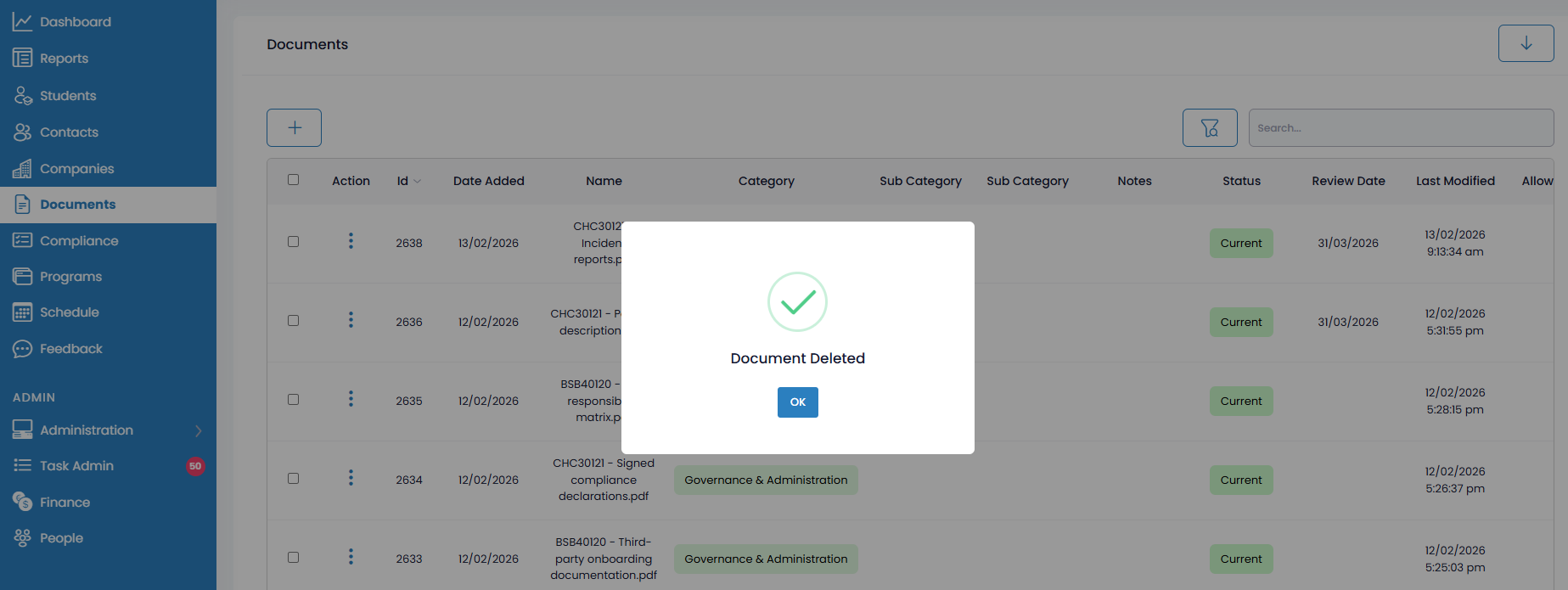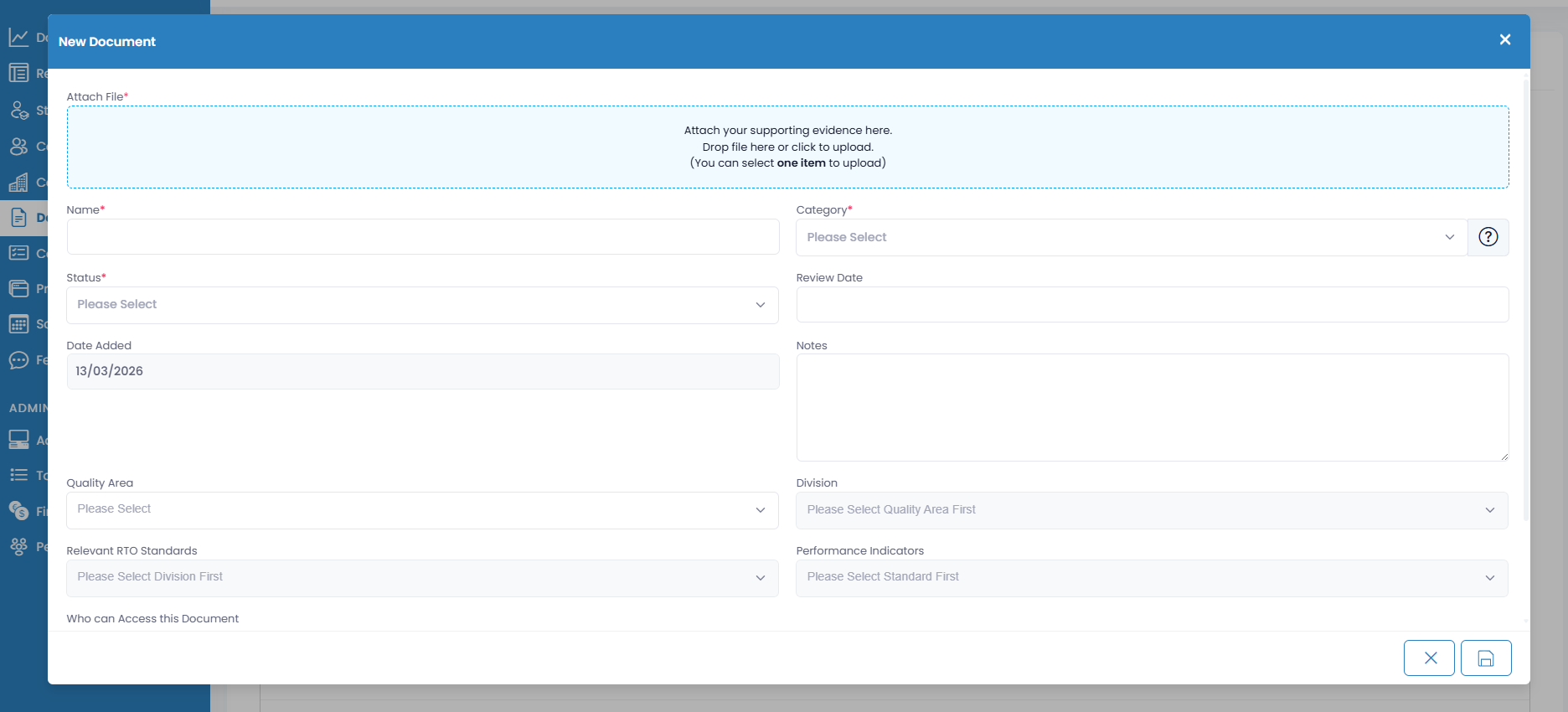 Relevant RTO Standards | (For QMS Documents) not available unless Division is chosen. |