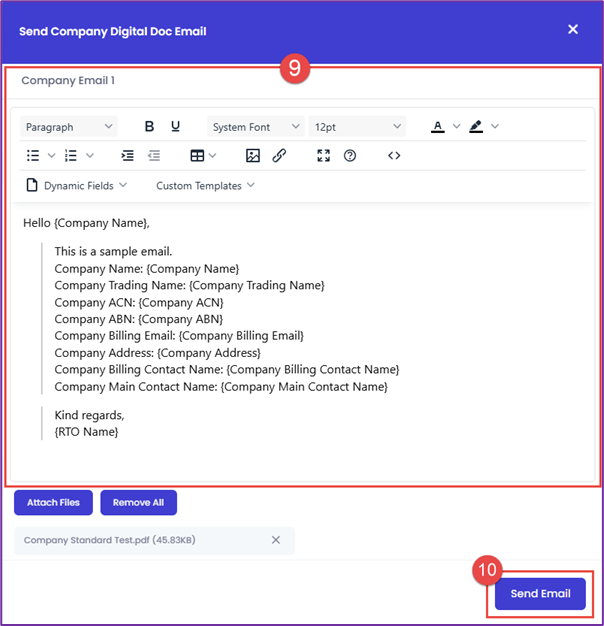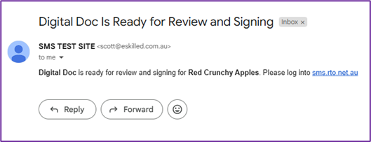 - To access the document for signing, an auto-generated email will be sent to the company's main contact email address. Below is the default email content that will be sent: