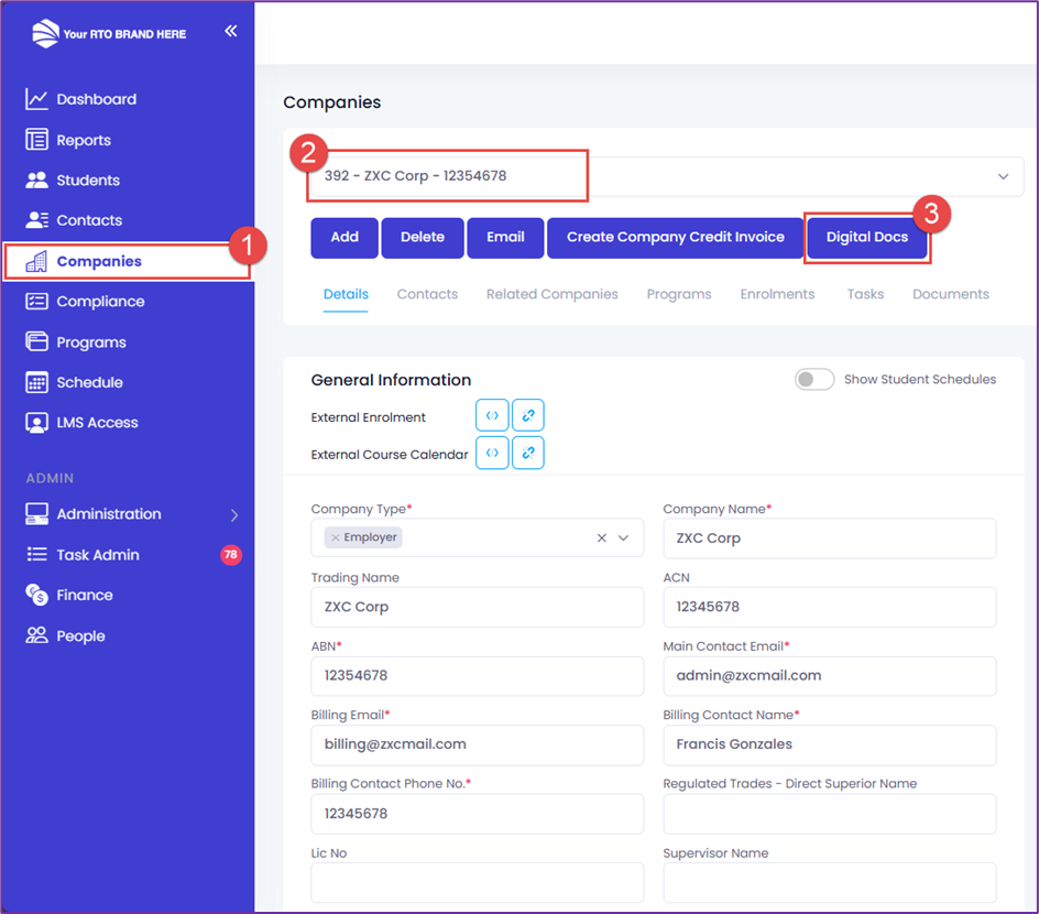 In this tutorial, we will show you how to email, download, or publish the digital document/s for company contact's signature.