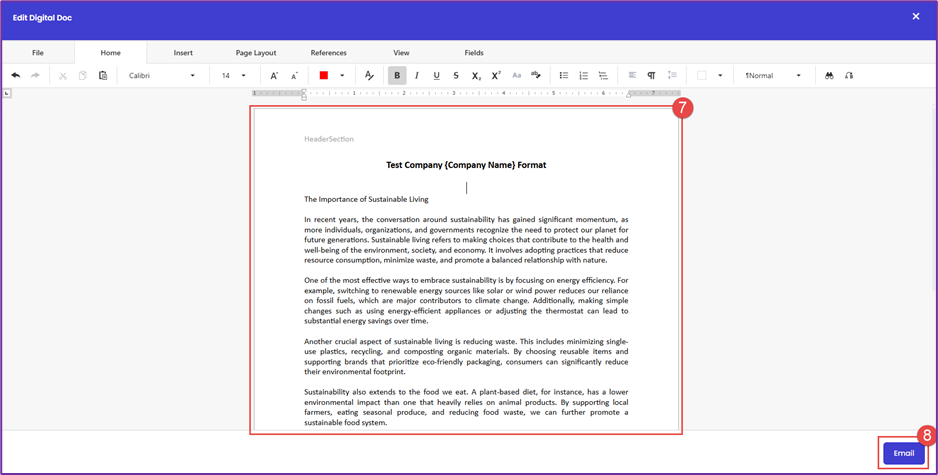 7. The Digital Document Editor will show up. Apply your changes here. Changes made here will not apply to the original template.