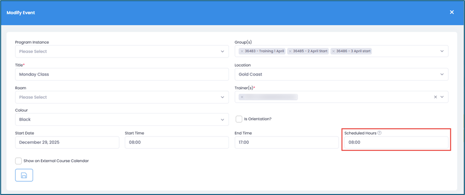 An Event Roll is a document or digital record used to track student attendance at a specific training session, class, or event associated with a course. This tool helps ensure accurate record-keeping and supports compliance with attendance monitoring requirements for training organisations.