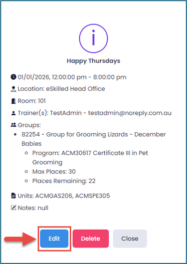 2. Click on the event where you want to record student attendance. Click Edit.