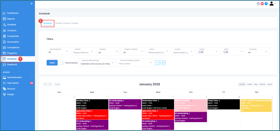 1. From the sidebar menu, go to Schedule, then navigate through the calendar.