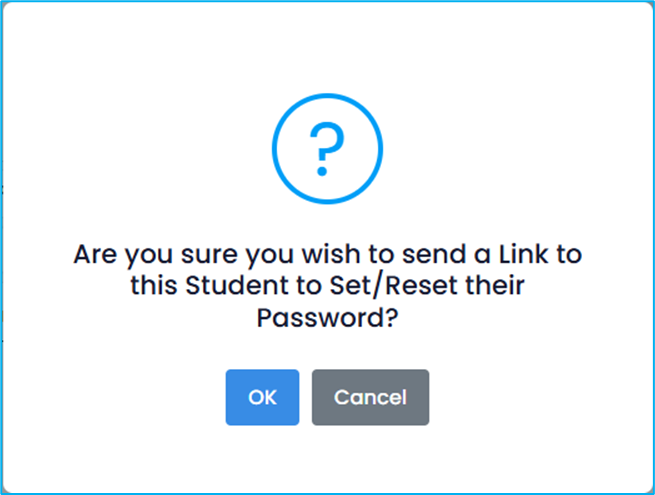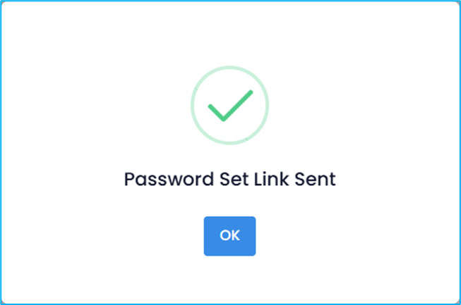 In the Send Set Password Link modal, a confirmation message will appear. Click OK to confirm.