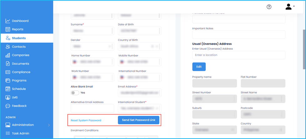This tutorial provides step-by-step instructions on how to reset a password and send a set password link for a Student in the Student Management System (SMS).