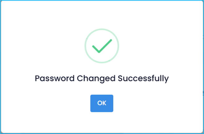 A notification message will appear confirming that the password has been successfully changed. Click OK to close it.