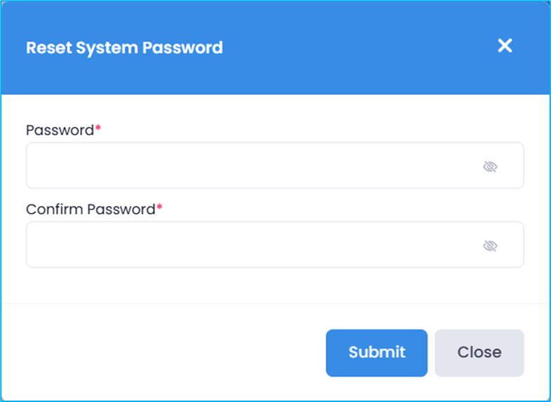 In the Reset System Password modal, enter the new password for the student twice (the second entry is for confirmation) and click Submit.