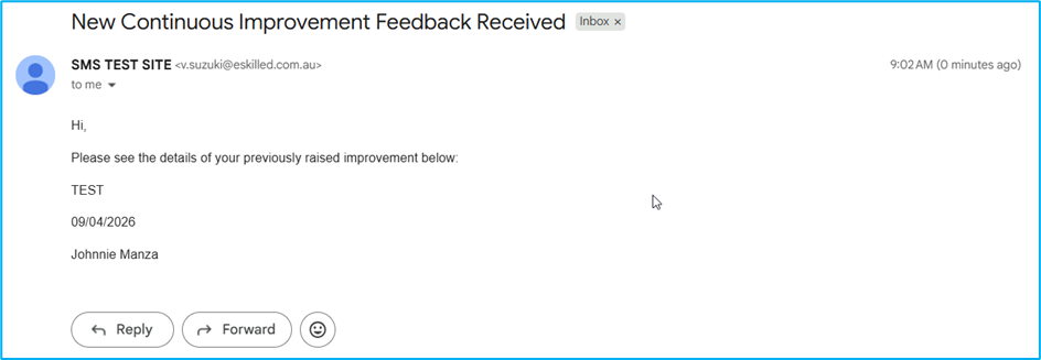 The above are the steps on how to send emails from Continuous Improvement, Complaints, and Appeals.