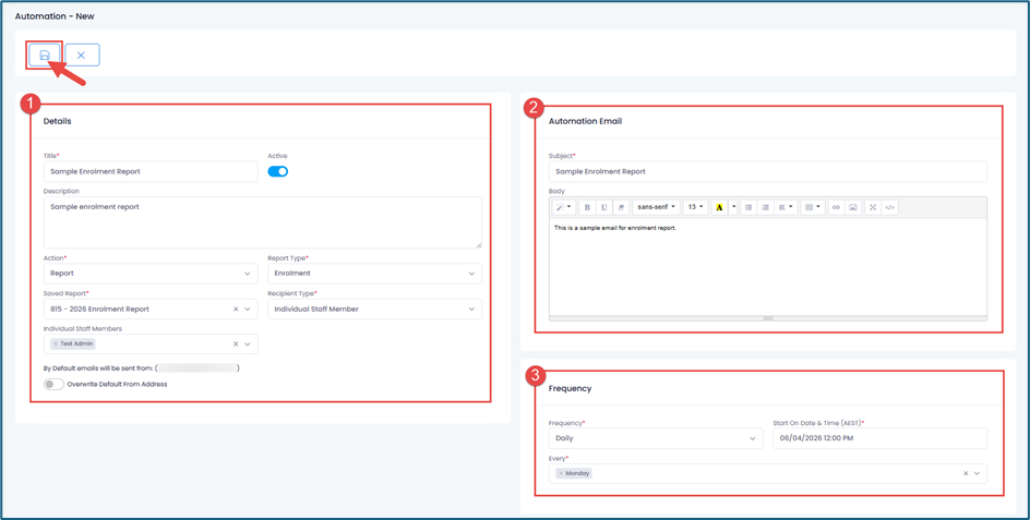 - An enrolment report must be created before setting up an automated enrolment report. See the related tutorial: How to Generate an Enrolment Report in the SMS.