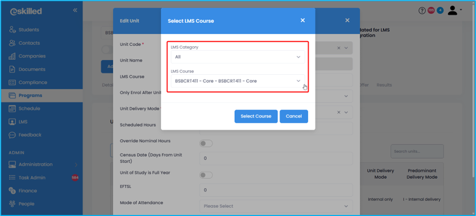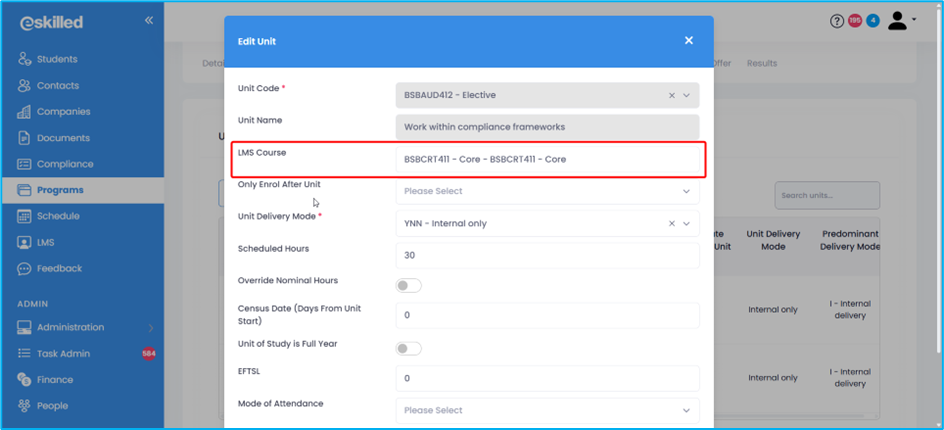 Overview To ensure that your student's progress in the eSkilled Learning Management System (LMS) is properly synced to the SMS, setting up the connection between the LMS course and the SMS program instance units is necessary. With this connection, ...