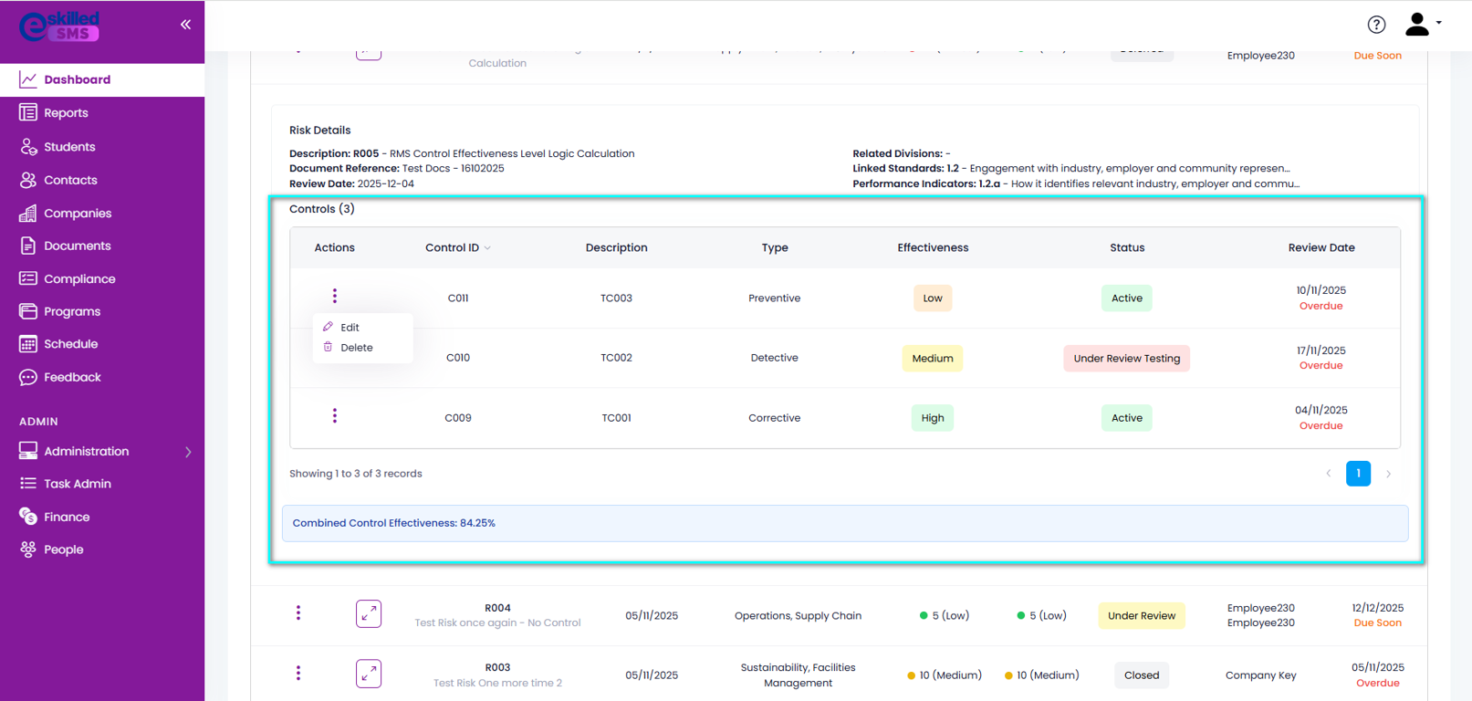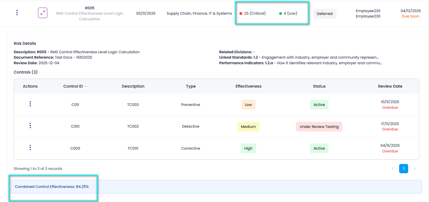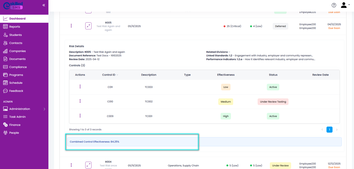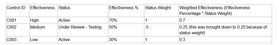 | Effectiveness | Measures how well this control reduces the risk. Higher effectiveness means a greater reduction in residual risk. |
