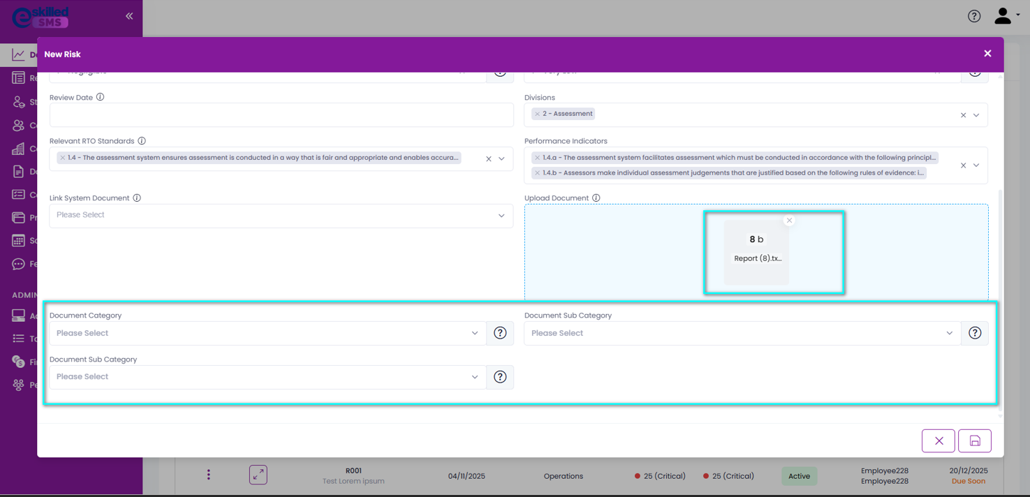 | Upload Document | Upload supporting documents for this risk (policies, procedures, reports, etc.) |
